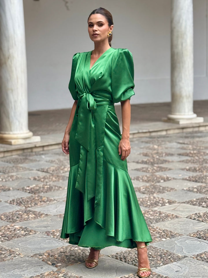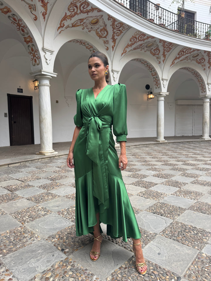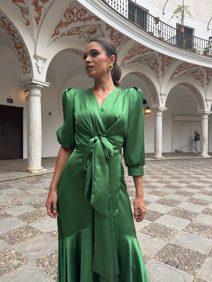 BELLA. Elegant, sophisticated, comfortable and with an excellent pattern. A unique design that is back again this season, but now in an elegant satin fabric with a super flattering and versatile pink background print. Without a doubt one of the most special dresses in our collection. Designed and made in Spain with satin fabric and many details to make you the Perfect Guest. Depending on your event, change the accessories and create your perfect outfit.