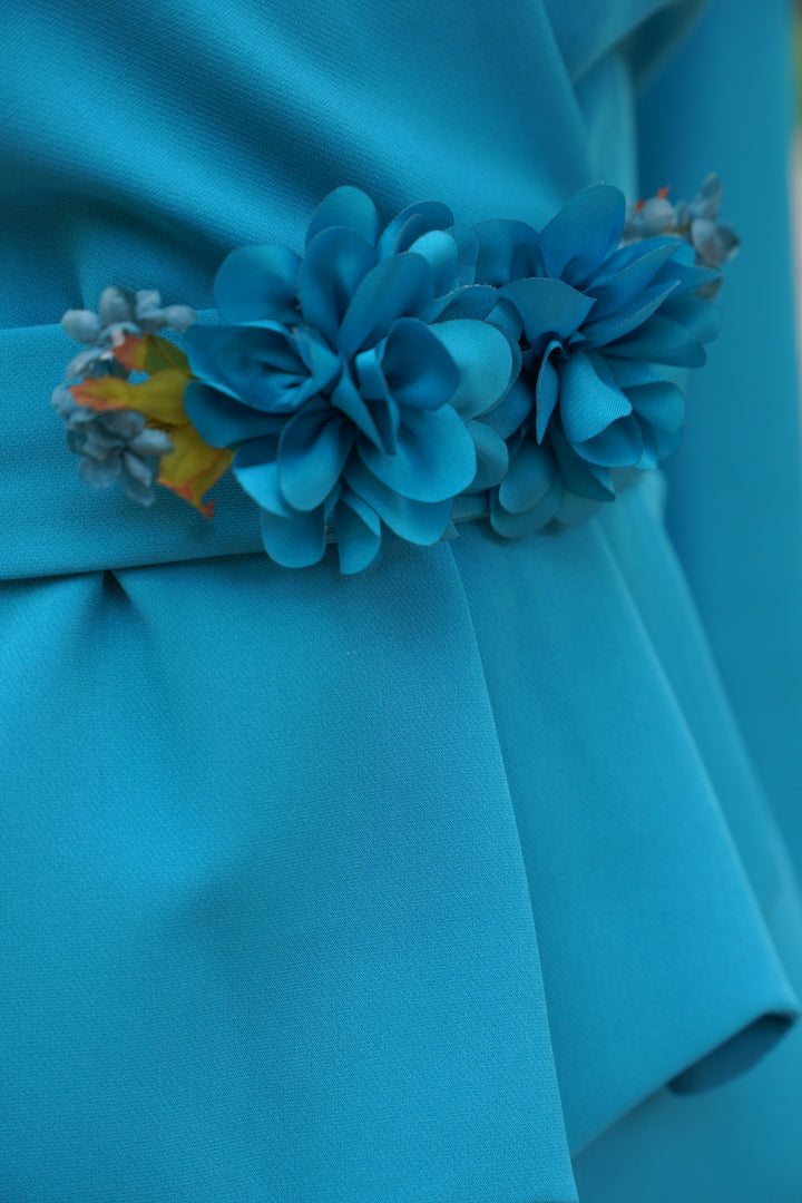El vestido Dalia combina elegancia y estructura en un diseño que realza la silueta femenina. Con escote cruzado y detalle floral en la cintura (se puede quitar) aporta un toque delicado y sofisticado. Su corte midi y el ligero volante en el talle crean una figura armónica y favorecedora, perfecta para invitadas de boda o eventos de día.