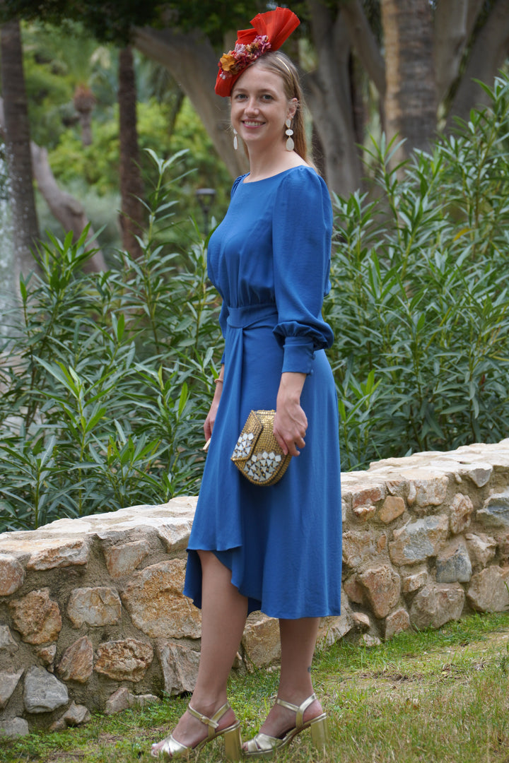 El vestido Débora destaca por su elegancia natural y su diseño fluido. Confeccionado en un tono azul profundo, combina una silueta favorecedora con un corte asimétrico que aporta movimiento y modernidad. Las mangas largas abullonadas y el escote cerrado realzan la feminidad con sutileza, creando un look equilibrado entre sobriedad y sofisticación. Ideal para invitadas que buscan un estilo refinado y cómodo a la vez.